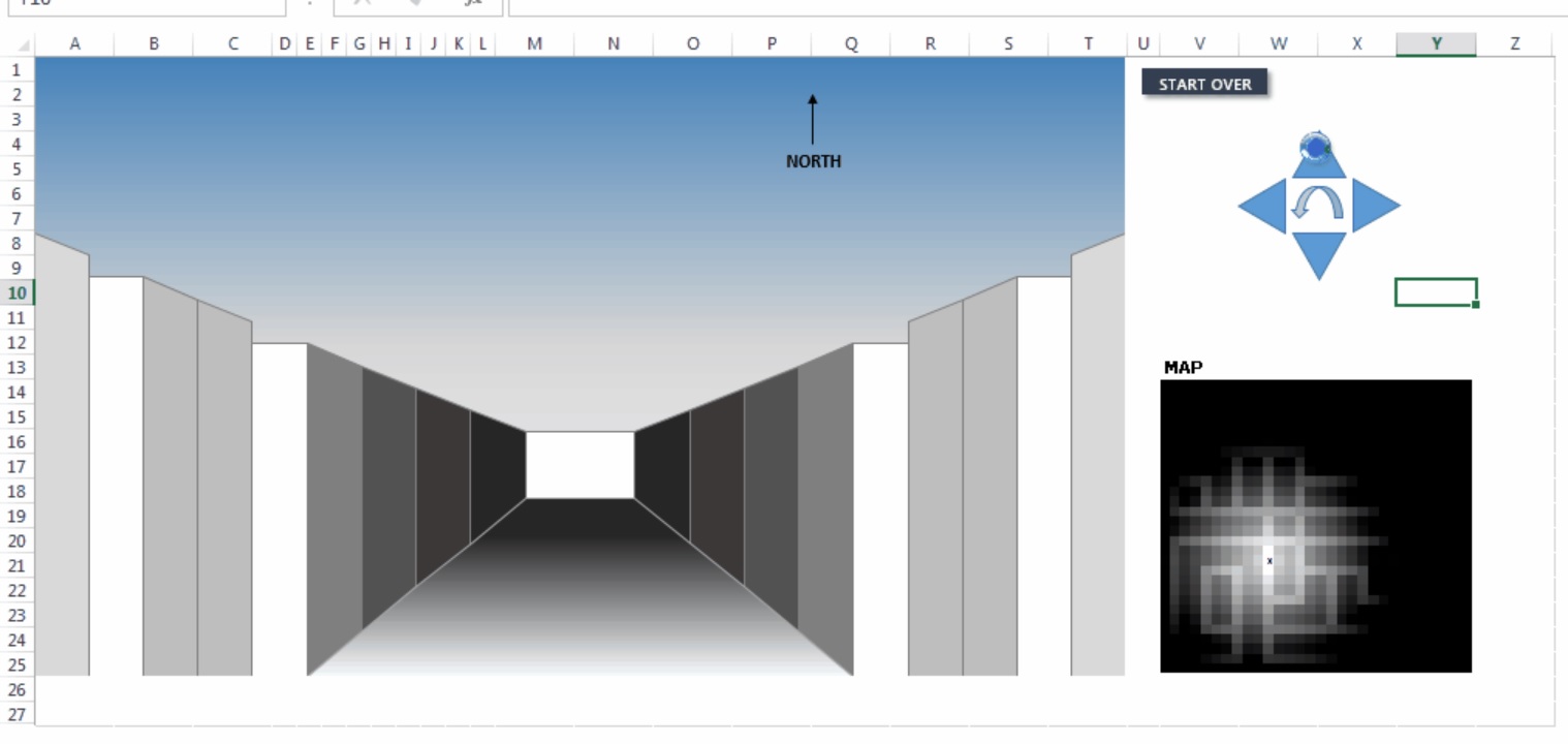Prima di Solly però ci sono stati tantissimi altri annoiati utilizzatori di Excel che hanno pensato bene di rendere il foglio di calcolo di Microsoft molto più interessante. Nel 2013 Jordan Goldmeier ha sviluppato in una griglia di Excel e un vero e proprio labirinto 3D navigabile grazie ad una mappa e ai pulsanti freccia del foglio di calcolo.