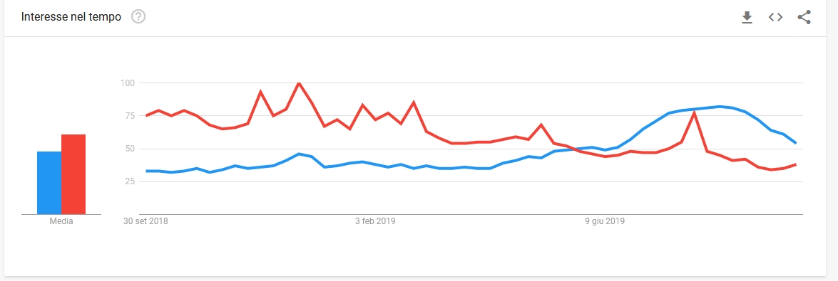 Anche Youtube sembra aver visto una crescita notevole di video sull’argomento minecraft; se proviamo ad isolare i dati ottenibili da Google Trends cercando di isolare unicamente i contenuti provenienti da Youtube si ha un grafico molto simile a quello già visto con i volumi di ricerca con un superamento in prossimità dell’arrivo della decima stagione di Fortnite Battaglia Reale. Anche i creator di contenuti da dagli argomenti variegati sembrano essere ritornati su Minecraft, in occasione della campagna pubblicitaria di Microsoft.