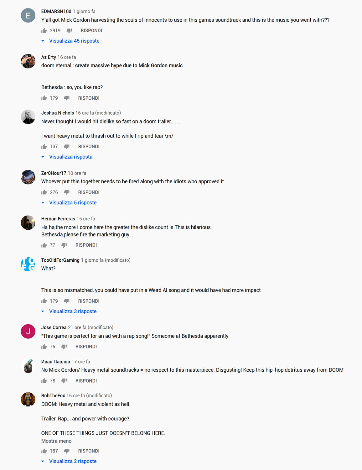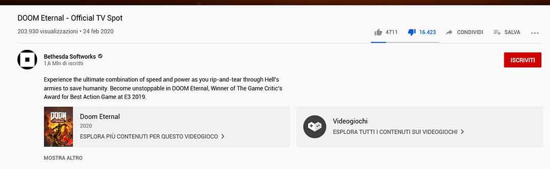 Oramai il danno è fatto, probabilmente questo è l’unico video nella storia di Doom con una ratio simile di Dislike, un guaio se pensiamo a quanto la community sia attaccata alla figura di Mick Gordon e alla colonna sonora più Metal di sempre.