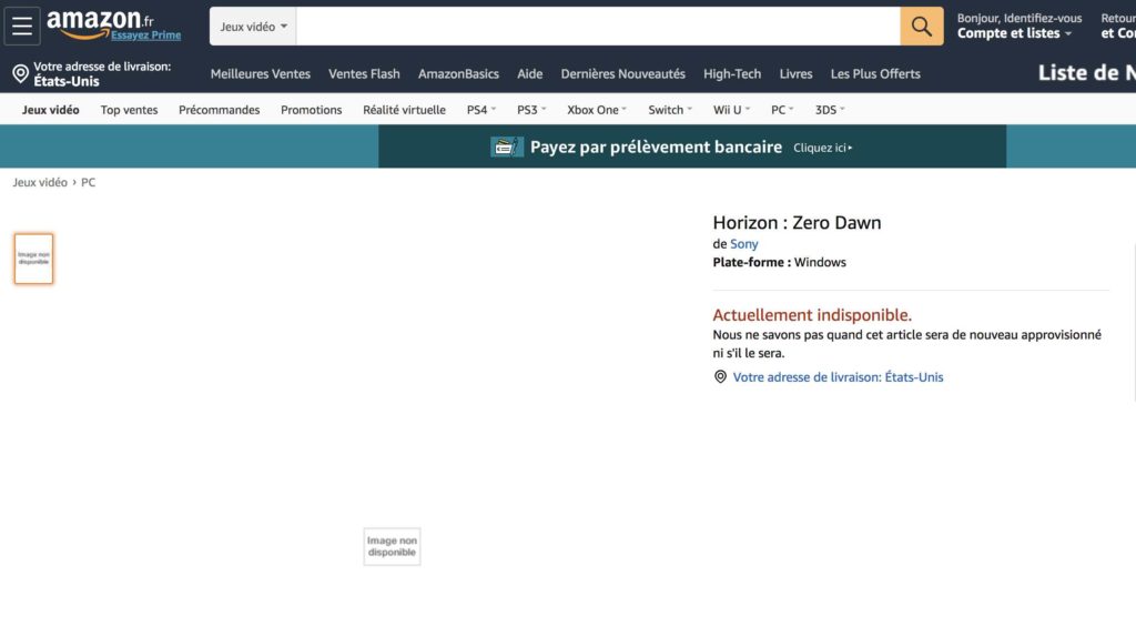 Sulla versione francofona dell’ecommerce più grande d’occidente è infatti comparso il titolo, privo di screenshot e di tutto il resto con giusto i dati ufficiali. L’annuncio è stato poi prontamente cancellato dalla piattaforma, come solitamente succede per due tipologie di oggetti:
