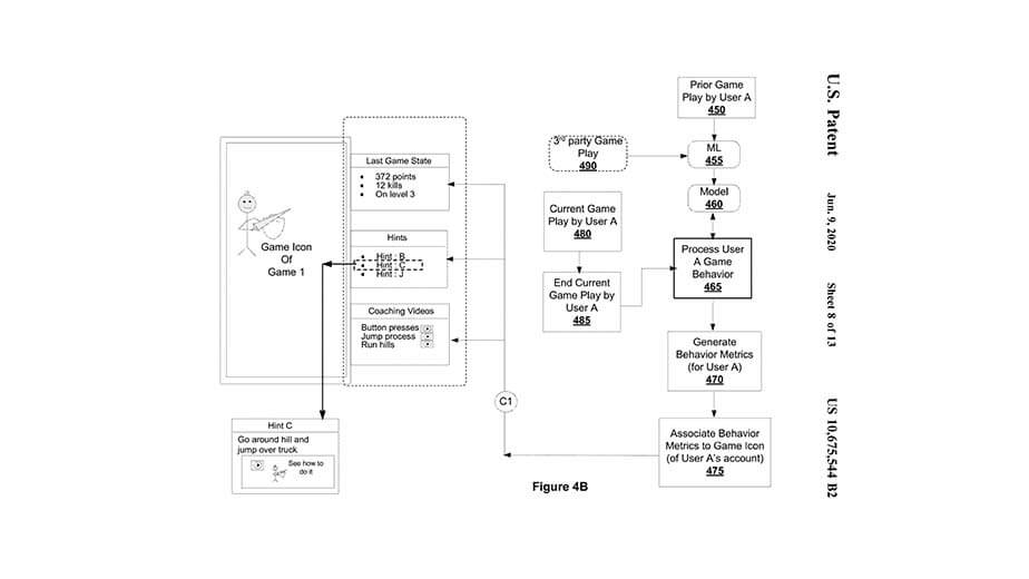 Il brevetto prevede un apprendimento automatico della console che attingerà alle registrazioni di gameplay salvate dagli utenti per cercare di aiutare quelli bloccati. In sostanza, il brevetto descrive un sistema che analizza i filmati di gioco catturati da altre persone per decidere se potrebbero effettivamente aiutare un giocatore ad andare avanti. Se l’analisi va a buon fine, questi video verranno proposti sotto forma di suggerimenti.