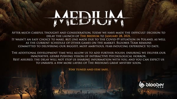Tradotto: “Così come l’attuale programmazione di altri giochi sul mercato”. Il riferimento a noi sembra abbastanza chiaro. Bloober Team ha deciso di rimandare The Medium, il suo gioco più ambizioso, quindi opera su cui punta tantissimo, anche a causa del rinvio di Cyberpunk 2077.
