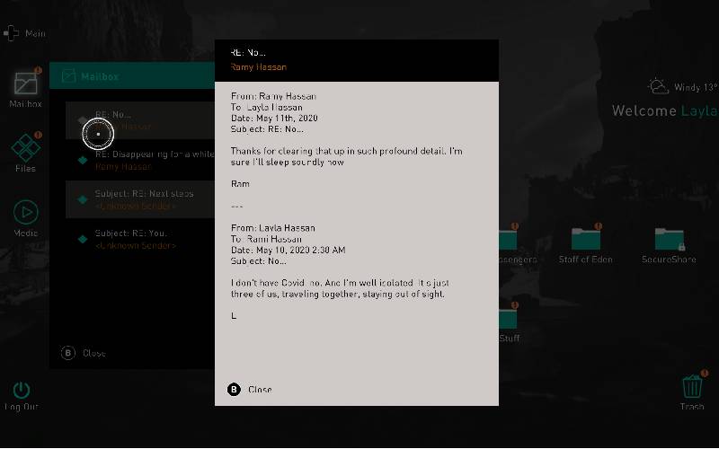 Dalle prime indiscrezioni di coloro che l’hanno giocato sembra infatti che esplorando il mondo al di fuori dell’Animus (cosa possibile fra le diverse sezioni di gioco) Layla, la nostra alter-go, possa imbattersi in una mail in cui l’interlocutore precisa di “Non avere il Covid”,un riferimento certo minore e che non impatta sulla storia, ma che colpisce.