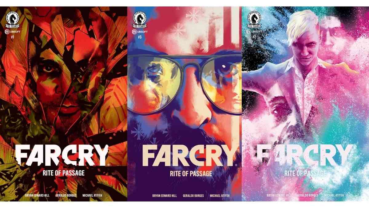 Intitolato Far Cry: Rite of Passage (probabilmente tradotto con Rito di Passaggio) e pubblicato da Dark Horse Comics in collaborazione con Ubisoft, questo ciclo di pubblicazioni darà uno sguardo approfondito ai più famigerati cattivi del franchise, e dovrebbe concretizzarsi in tre numeri in arrivo a maggio.