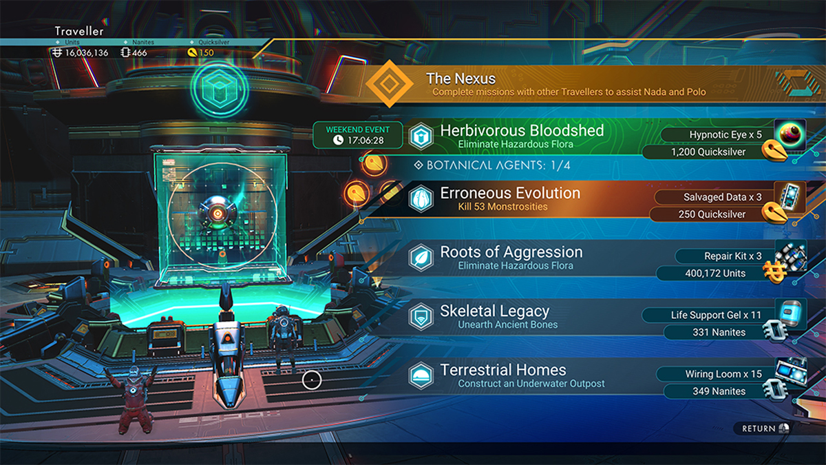 Inoltre, in gioco sono previsti eventi ogni weekend, raggiungibili dal Nexus. Polo e Nada, i due personaggi che controllano l’anomalia spaziale, forniranno a tutti i giocatori nuove missioni che garantiscono Quicksilver e altre ricompense.