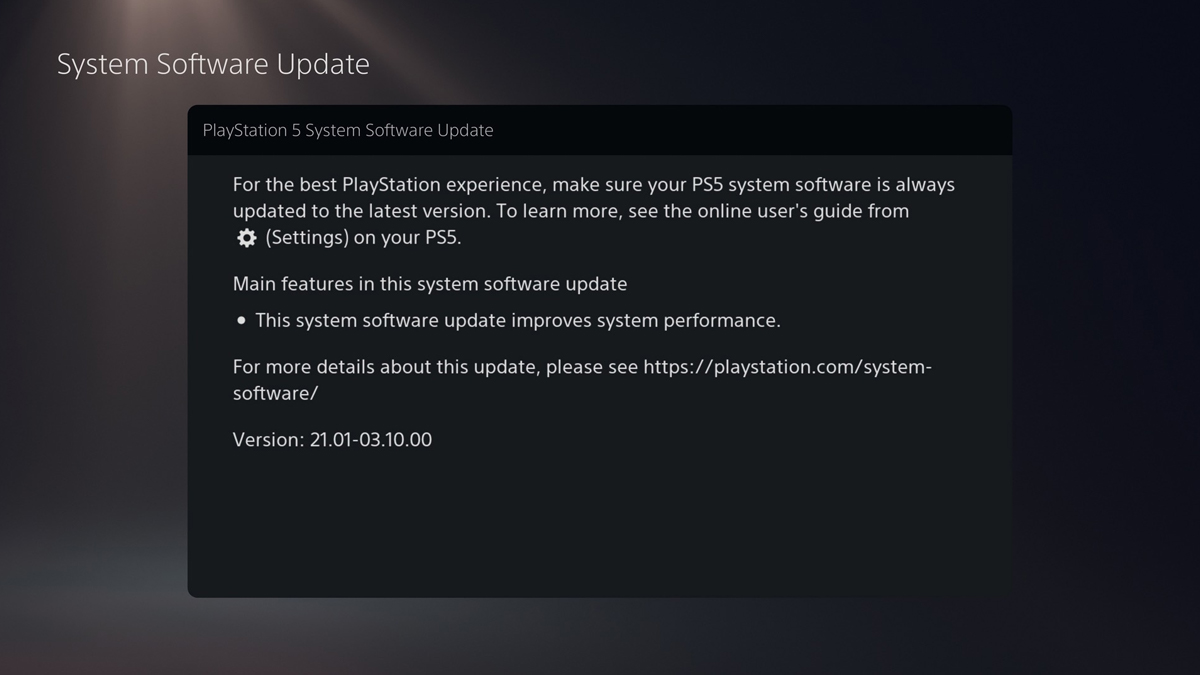 Si tratta della versione del firmware 21.01-03-10.00, e nonostante le modeste dimensioni in termini di spazio e nonostante la semplicità delle note ufficiali della patch, se siete tra i fortunati possessori di una PlayStation 5 dovreste riscontrare dei miglioramenti. Il changelog riferisce solo che l’attuale aggiornamento “migliora le performance del sistema“, ma non comunica esattamente quali aree siano state influenzate dalla patch.