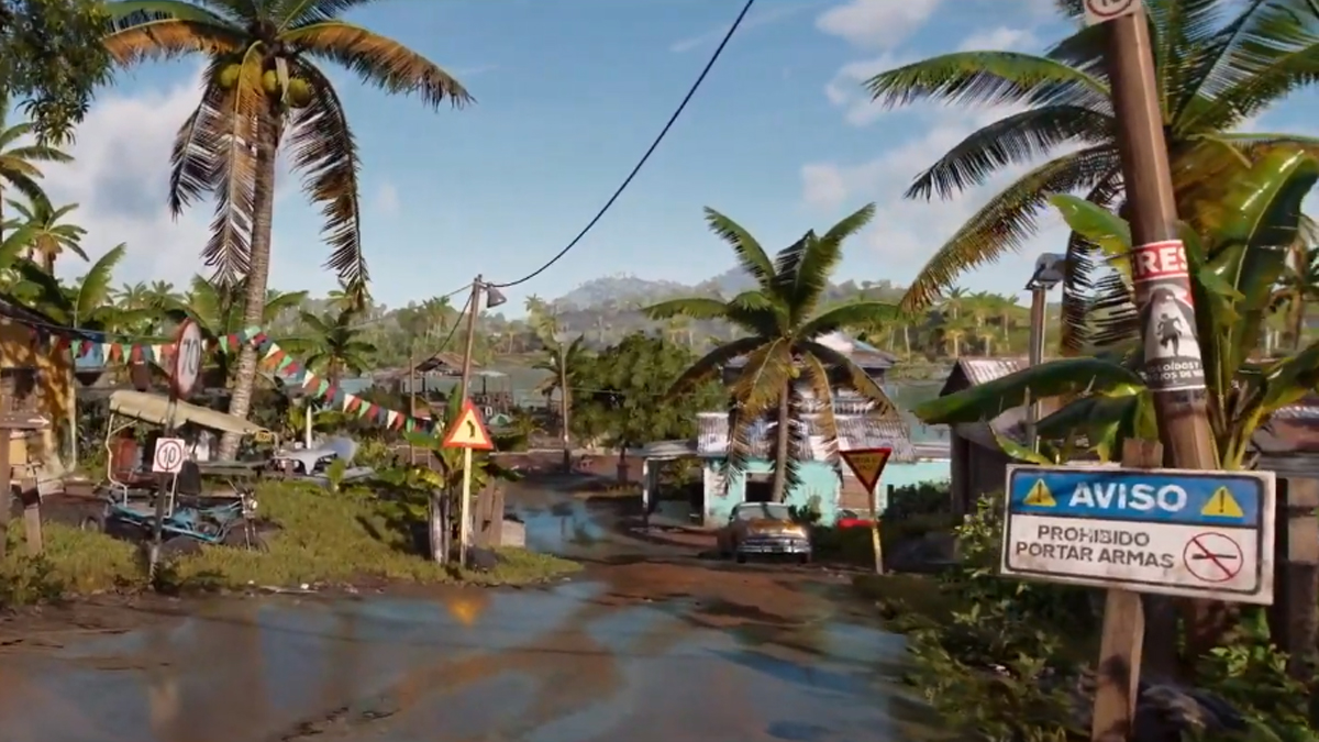 Prima della presentazione del gameplay Ubisoft ci ha dato il benvenuto con un countdown di mezz’ora dove abbiamo potuto ammirare tante – forse troppe – cartoline animate che, tuttavia, ci hanno lasciato qualche indizio sulla lore di gioco, tra riferimenti alle dittature comuniste e alle isole caraibiche, a un gruppo di lotta ribelle chiamato Libertad, alle spiagge paradisiache e ai centri urbani decadenti e poveri; il tutto è stato accompagnato dalle soundtrack di gioco, tra ritmi cubani e musiche più tensive e cupe.