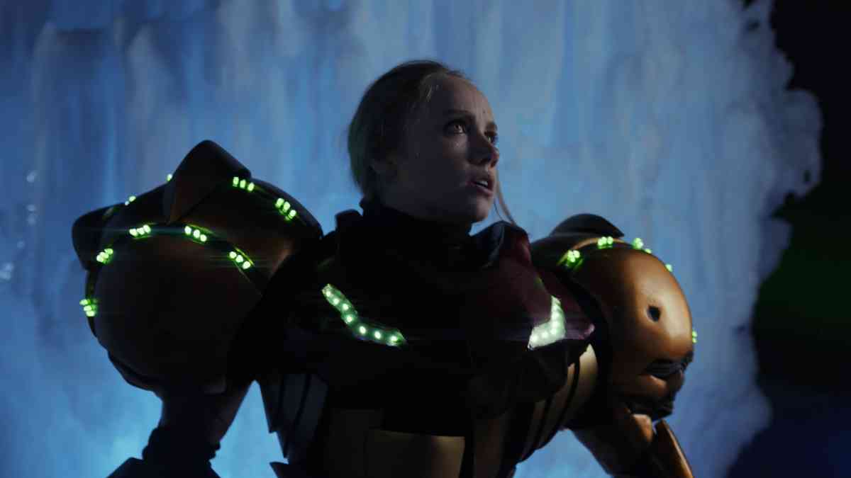 Nel video, Samus esplora un ambiente ghiacciato dall’aspetto impressionante, completo di strutture congelate e aurora boreale. Sfoggia una tuta convincente e diventa persino una palla morph, come nei giochi.
