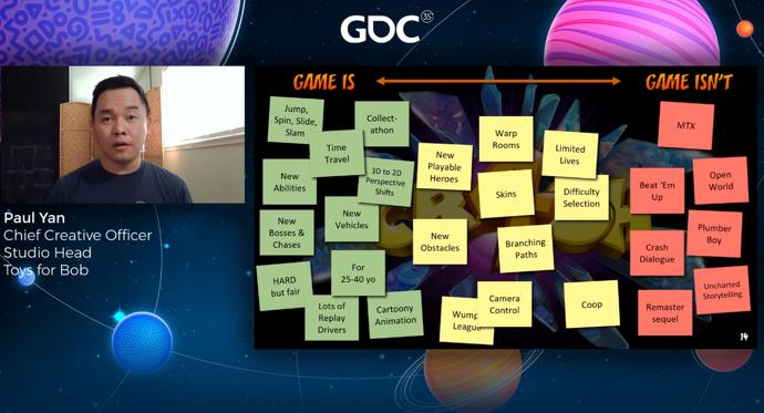 Nel corso della Gamescom 2021, infatti, Paul Yan, Chief Creative Officer della software house, ha mostrato una diapositiva in cui sono presenti una serie di post-it riportanti varie feature riguardanti il quarto capitolo del marsupiale arancione, alcune reali, altre ironiche. Tra questi è presente un bigliettino su cui è scritto proprio “Wumpa League”. Si potrebbe trattare del primo teaser ufficiale del nuovo gioco di Crash, considerando anche il fatto che il post-it in questione è l’unico la cui scritta è coperta parzialmente.