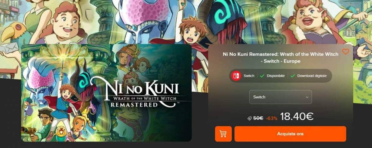 Detto questo, passiamo all’offerta disponibile per tutti i possessori di Nintendo Switch! Ni No Kuni Remastered: Wrath of the White Witch è scontato del 63% su Istant Gaming (basterà cliccare qui per trovarlo), offertona che porta il prezzo da 50 euro a soli 18,40 euro! Se siete interessati, il nostro consiglio è di affrettarvi visto che sarà disponibile solamente fino ad esaurimento scorte, cosa che – visto il titolo in questione – potrebbe accadere da un momento all’altro.