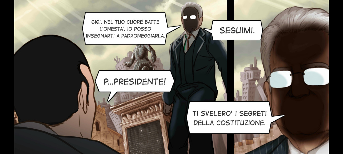 La cosa esilarante è che i boss in questione sono disegni animati delle più eminenti cariche istituzionali dello stivale. Troveremo il canuto, occhialuto e dall’espressione sempre mite Presidente che ci affronterà per la prima battaglia che funge anche da tutorial, e passeremo al Rottamatore, dallo spiccato accento toscano. E via dicendo.