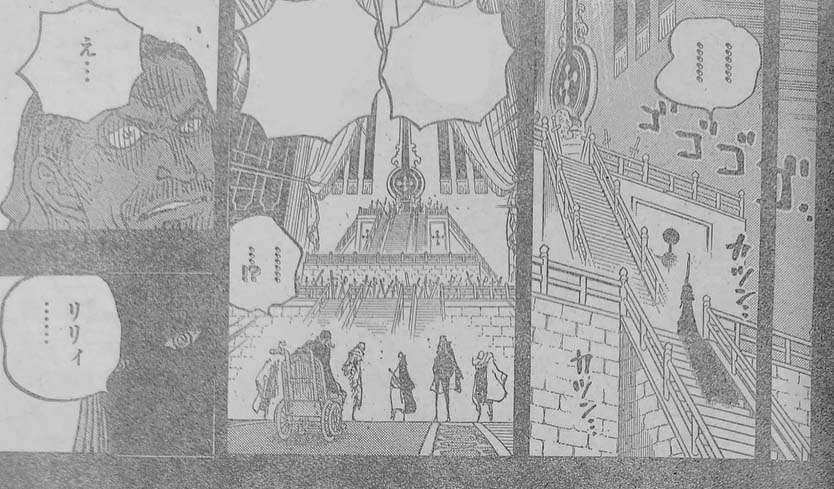 I Gorosei confermano tutto, ma continuano a chiedersi quale sia il punto. Cobra risponde di aver cercato tra i vecchi documenti del paese di Alabasta il nome della principessa di 800 anni fa, Nefertari Lily, ma non venne trovato da nessuna parte. Lei non era mai tornata ad Alabasta, a governare fu il fratello. Cobra chiede ai Gorosei se sanno qualcosa, ma loro pensano sia tornata a casa dopo aver rifiutato lo status di Drago Celeste. Poi però Cobra chiede anche il significato della D, facendo intendere che sa qualcosa per via di una lettera lasciata da Lily alla famiglia reale, passata da generazione in generazione.