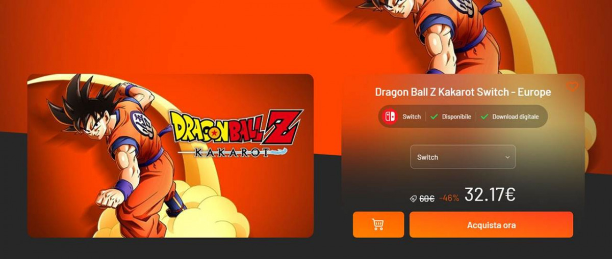 Arrivati a questo punto, è arrivato il momento di parlare di sconti: se possedete Nintendo Switch e volete acquistare Dragon Ball Z: Kakarot scontato del 46%, vi basterà cliccare qui e troverete la pagina di Istant Gaming dedicata all’offerta! Se nel vostro stomaco da gamer avete un buco che necessita una bella porzione di pane e Kamehameha, vi conviene approfittarne!