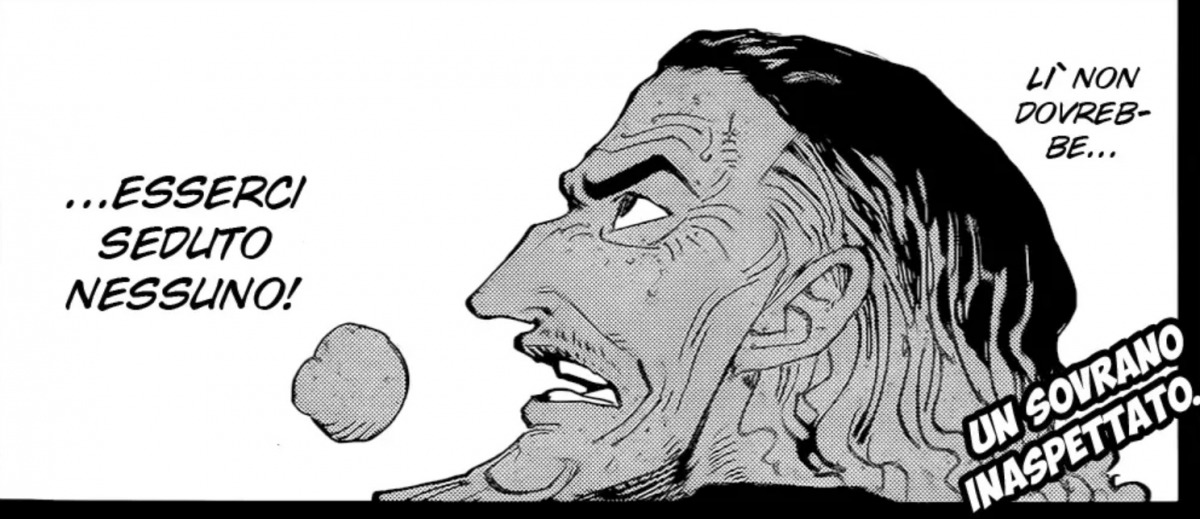 Ovviamente il flashback non viene interrotto e il capitolo continua dalla sala del trono. Veniamo a scoprire che i Gorosei si rivolgono a Im chiamandolo Mu. Non è nient’altro che l’abbreviazione di “IMU”, potrebbe quindi non significare niente più di questo, ma “Mu” è anche un termine buddista che corrisponde al concetto di “nulla” o “senza”, aggettivi perfettamente affini al personaggio, essendo un individuo che non dovrebbe esistere. Persino Cobra afferma che in quel trono non dovrebbe esserci seduto nessuno. Ergo potrebbe secondo me avere un potere affine a questo concetto, ma è ancora presto per scoprirlo.