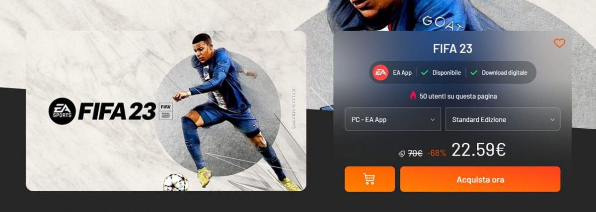 Come potete vedere dall’immagine, grazie all’affidabile store di Istant Gaming, invece di spendere 70 € ve ne basteranno solamente 22,59 €! Una volta acquistato, dovrete far partire l’app di EA e potrete immergervi nel verde dell’erba digitale di FIFA 23! Se invece siete indecisi sull’acquisto e cercate un’analisi e descrizione più approfondita del gioco, vi rimandiamo come sempre alla nostra recensione: potete trovarla qui.