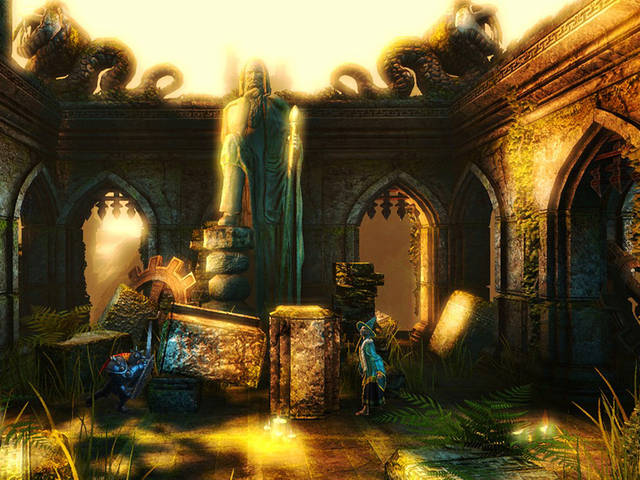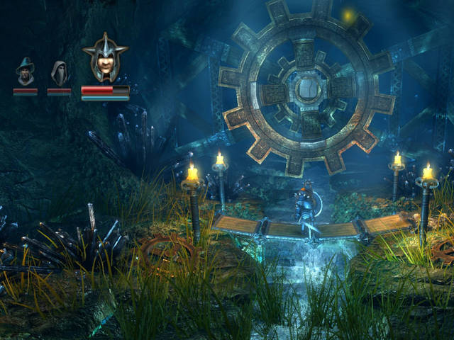 Trine riprende pienamente questo concept di gioco e lo porta di peso nella nostra epoca tecnologica, immergendoci dunque in un mondo fantastico completamente realizzato in 3D ma con una visione a scorrimento delle scene – per di più, gran parte dei puzzle presenti all’interno del gioco, dovranno essere superati grazie all’uso dell’intelligenza del giocatore e all’unione non solo del cervello ma anche della fisica virtuale del motore di gioco: in parole povere, se ad esempio dovessimo superare un ponte che gira su se stesso, saltandoci sopra, dovremo stare attenti a calibrare bene il nostro peso, onde evitare di capovolgerci ma anche per stabilizzare l’asse di legno.