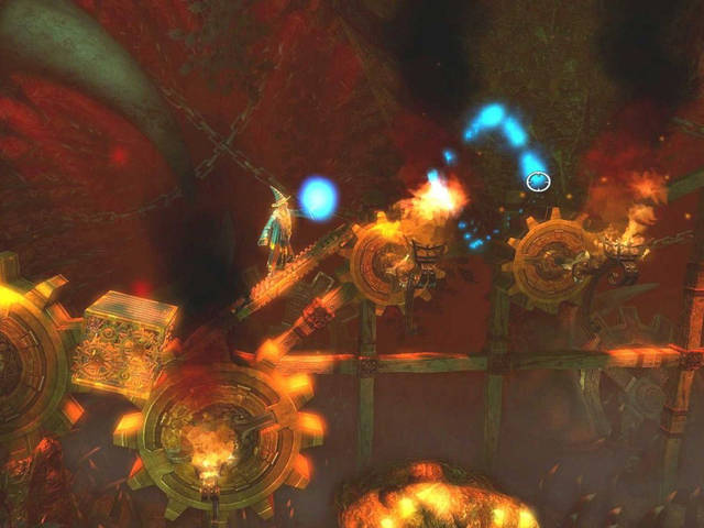 Trine è poi ricco di dettagli, anche in questo caso realizzati veramente in modo maniacale, tanto da vedere (per esempio) ogni singola monetina d’oro in una montagna di preziosi o uno sfondo in lontananza per quanto riguarda il paralasse dello schermo. Per chiudere, segnalo anche degli effetti luminosi di primissimo livello, sia per quanto riguarda l’illuminazione generale che i riflessi – non da meno gli effetti particellari come fumo, fiamme o incantesimi: il gioco gira una meraviglia con tutti gli effetti attivati al massimo del dettaglio…ovviamente, trattandosi di un platform game non mi sarei di certo aspettato dei caricamenti lunghi o degli scatti al frame rate ma vista la bellezza grafica generale, questi problemi per fortuna non ci sono.