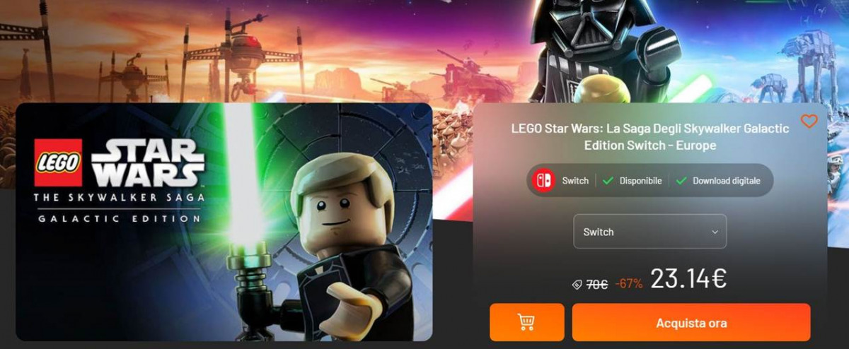 Giocatori Nintendo a raccolta! Se volete acquistare LEGO Star Wars: La saga degli Skywalker per Nintendo Switch scontato del 68%, vi basterà cliccare qui e troverete la golosissima offerta di Istant Gaming. Come potete vedere dall’immagine, lo stock di copie scontate a poco più di 20 euro è limitato, questo vuol dire che se siete interessati al gioco vi conviene affrettarvi: l’offerta, da un momento all’altro, potrebbe non essere più disponibile!