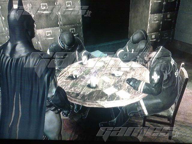 Sullo stesso balcone dell’indovinello precedente, basta voltarsi per vedere una porta da aprire col decriptatore. Entrate nella stanza e usate l’analisi ambientale sul tavolo con le tre guardie dove ci sono le carte con le tacche di Zsasz.