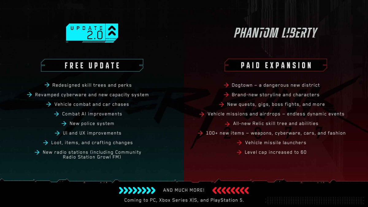 CDPR pare anche abbia ascoltato il feedback riguardo il gameplay di Cyberpunk 2077: con il DLC e la patch 2.0 infatti i perk e il sistema di cyberware che avevamo imparato a conoscere e ad usare verranno rivisitati.