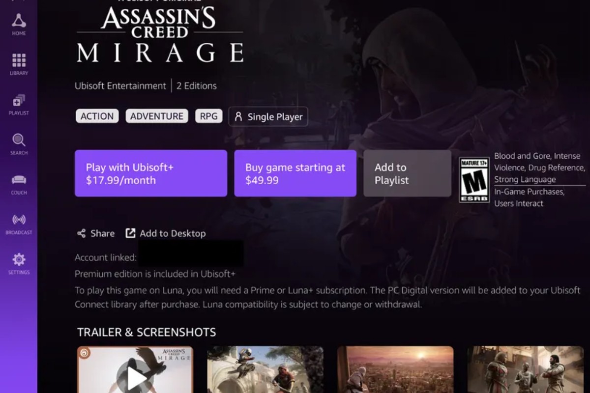 Di conseguenza visto che l’acquirente detiene la licenza del gioco comprato potrebbe concretamente giocare inizialmente ad Assassin’s Creed Mirage su Luna e poi riprendere la partita su GeForce Now. Al momento si tratta solamente semplice ipotesi e appunto per questo bisognerà aspettare un’affermazione concreta da parte di Amazon nel prossimo futuro. Tuttavia pare che alcuni membri di Ubisoft abbiano certificato quest’ipotesi: comunque sia finché non si esprimerà il colosso americano sulla questione, vi è da prendere le informazioni a riguardo con le pinze.