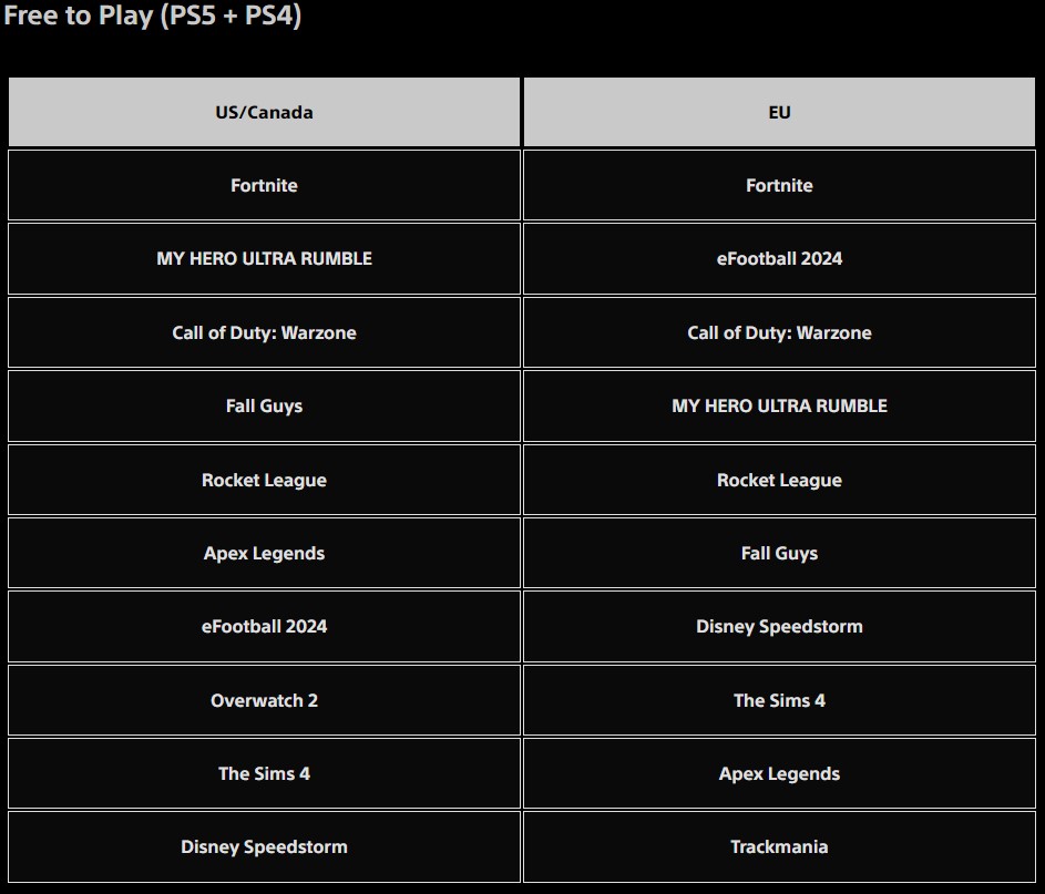Per quanto riguarda i titoli free-to-play, senza troppe sorprese, è Fortnite a dominare lo scenario dei titoli più scaricati, ma i giochi sportivi sono sempre presenti; inoltre si segnala un terzo posto in entrambe le regione per Call of Duty: Warzone, che la prossima primavera esordirà anche sulle piattaforme mobile con una versione del gioco realizzata ad hoc.
