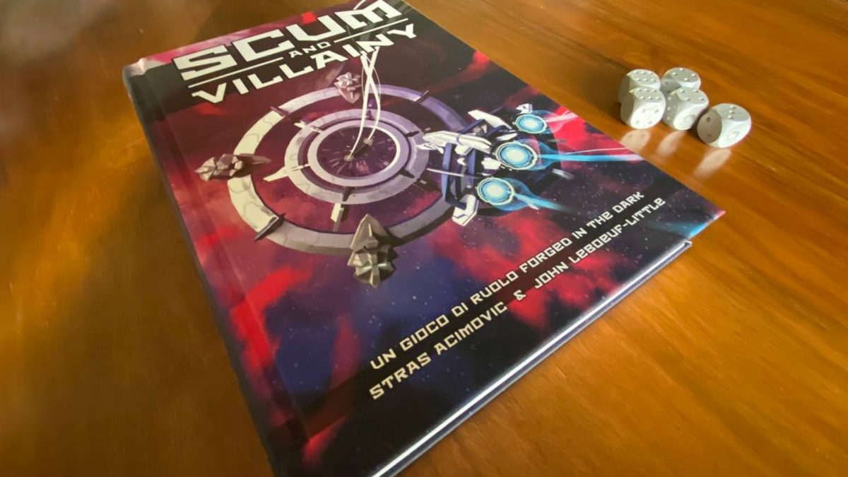 Scum & Villainy è un GDR a tema pirati e mercenari spaziali, basato sul sistema di gioco open source Forged in the Dark. Questo sistema, originario del GDR Blades in the Dark, usa praticamente solo dadi a 6 facce e basa la sua narrazione sul cambiamento che le azioni dei giocatori portano in gioco, attraverso meccaniche come lo Stress o la Resistenza che possono arrivare a spaccare i propri personaggi. Non è una buona partita a Scum & Villainy se non è volato via qualche arto o se i personaggi non hanno subito qualche trauma emotivo.