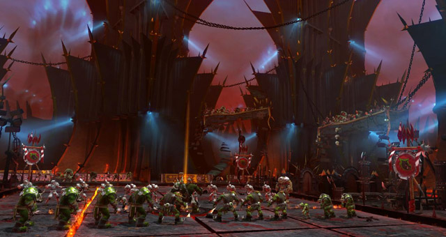La partita che si appresta ad essere giocata è una delle più attese della stagione e vedrà scontrarsi i favolosi Elfi Silvani della squadra degli “The Green Glades” contro i temutissimi giocatori del Caos, i pericolosissimi e scorrettissimi “Maraudian Mashers”. Gli applausi che ci giungono fin qui nella tribuna delle telecronaca indicano che i giocatori stanno per entrare in campo e infatti ecco che le due squadre iniziano a disporsi. La folla negli spalti e a bordo pista sembra letteralmente impazzita mentre le due squadre si scambiano sguardi torvi e occhiatine fugaci alle nuovissime armature di entrambe le formazioni: i giocatori del Caos sembrano davvero cattivi. Vediamo ora l’arbitro Goblin che arriva per sistemare la palla e disquisire di alcune regole che ovviamente in campo non verranno assolutamente rispettate. Il lancio della moneta e la disposizione delle due squadre è stata scelta – gli Elfi batteranno per primi mentre il Caos si sta già schierando in una difesa davvero compatta. Fischio di inizio amici ascoltatori…la nuova partita del Blood Bowl è appena cominciata, restare con noi e ne sentirete delle belle…ehy tu? Molla il microfono o ti spacco la faccia da lucertola che hai.