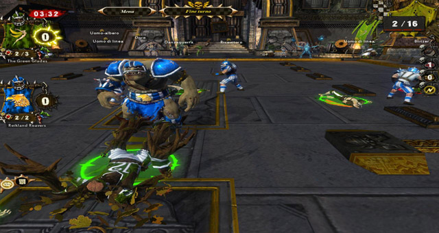 Sempre per quanto riguarda l’area di gioco, le caselle sono classificate in due modi, ci sono quelle verdi e quelle con due dadi rappresentati: le prime servono per spostarsi mentre le seconde possono azionare una delle tecniche descritte poco sopra, stordire un avversario o tentare di schivarlo – dico tentare perché quando il vostro giocatore sarà a tiro, quello avversario cercherà di placcarvi lanciando i suoi dadi e oltre alla fortuna, vincerà chi ha caratteristiche più forti.