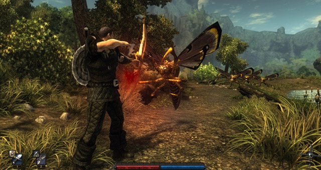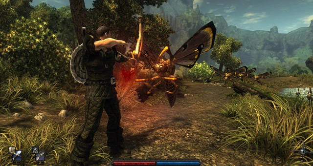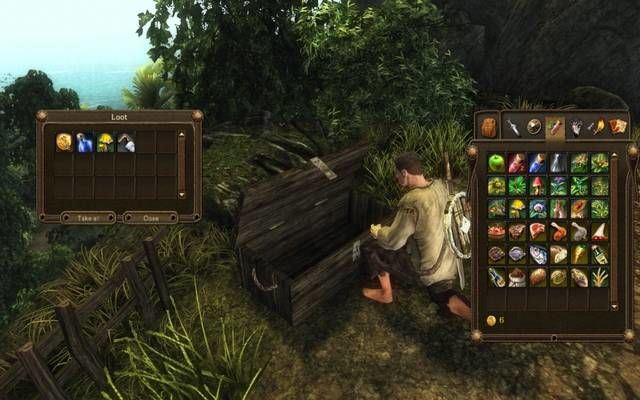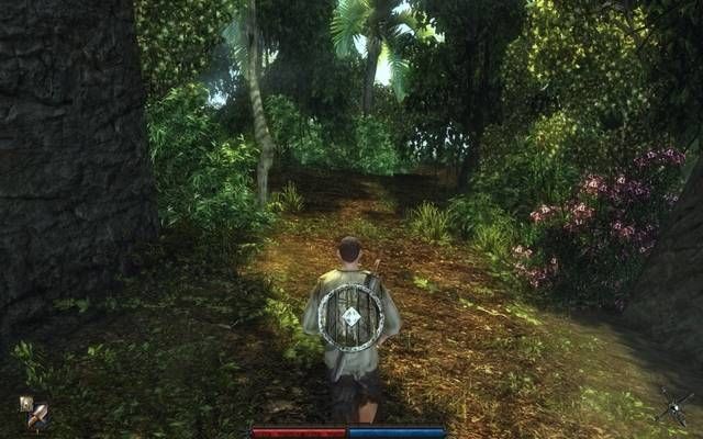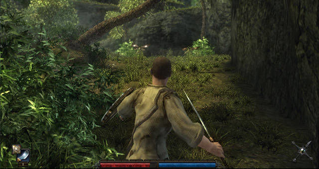 Il bilanciamento dei programmatori è davvero magnifico e sottolineo fin da subito che vista la mancanza nell’isola di nemici piccoli (dai ratti agli insetti sembra che tutti abbiano preso grandi quantità di steroidi), ogni combattimento deve essere centellinato al millesimo perché anche l’animale che sembra più debole o stupido, può portarvi alla morte istantanea dopo appena due o tre colpi ben assestati. Altro aspetto del combattimento è la possibilità di parare o di eseguire delle vere mosse consecutive con i tasti direzionali del giocatore. Dimenticatevi dunque di ciccare all’impazzata sul mouse, qui si deve calcolare bene la distanza e la forza – caricando il colpo potrete eseguire una mossa più letale ma sarete oltre che più lenti, anche esposti al nemico. Idem per le parate, non serve a nulla continuare a stare sulla difensiva senza esporvi quel tanto che basta a sferrare un colpo. Fra l’altro, già dopo la prima ora di gioco, vi troverete ad affrontare nemici in numero crescente anche facenti parte delle stesse unità come gnomi, ratti giganti, falene velenose, ragni antropomorfi, mummie di fango, etc per poi giungere a incontrare nemici molto più pericolosi e grossi – nelle immagini a corredo dell’articolo di vede qualcosa di più ma sappiate che la distinzione è ben calibrata.