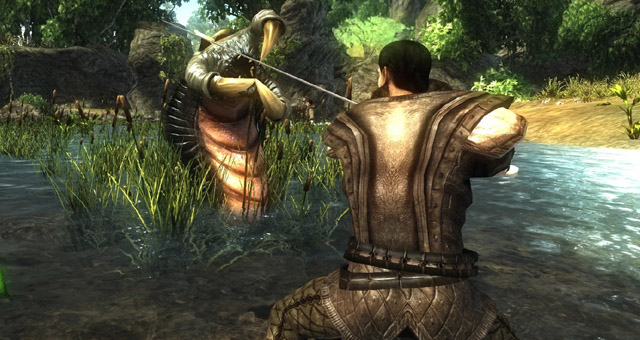 Faranga ha poi una particolarità unica, dalle sue terre non si può scappare perché tutto il territorio marino circostante è colpito da violente tempeste ma se questo non bastasse, sappiate che cercando di raggiungere il largo dell’isola, verrete divorati da dei mostri marini giganteschi che farebbero di voi ossa per i pesci. Da questo punto di vista, Risen è molto simile a Gothic 3, nel senso che tutto quello che avete intorno a voi è assolutamente esplorabile ma anche fortemente blindato nel senso che la libertà di movimento è una cosa totalmente effimera. Faccio un esempio più pratico: in Oblivion tutto quello che gli occhi vedevano, il corpo poteva raggiungerlo, anche scalando le montagne o cercando dei passi alternativi per raggiungere una determinata destinazione. Risen è in definitiva un gioco chiuso nel senso che non tutto quello che si vede e raggiungibile da subito, per di più alcuni posti non potranno proprio essere raggiunti ne ha piedi ne volando (si avete letto bene ma ne parlerò meglio più avanti).