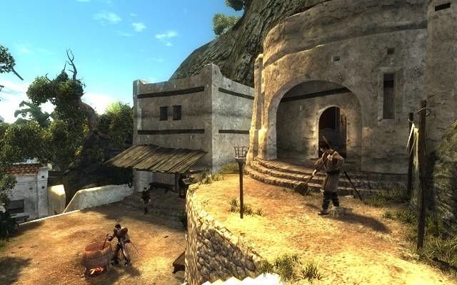 Purtroppo, come dicevo a inizio articolo, Risen non è esente da difetti – questi ultimi coinvolgono non solo il gameplay ma anche la parte grafica che personalmente mi ha proprio sorpreso ma in senso negativo. Taglio la testa al toro, le immagini che sono circolate per la rete nel periodo dell’annuncio del gioco, erano ben rimaneggiate perché il sontuoso grafico che mi ero abituato di vedere, anche con tutti gli effetti attivati al massimo, purtroppo non esiste o meglio, non come mi sarei aspettato di vedere. Non solo la modellazione generale degli ambienti risulta una tantino troppo spigolosa ma anche alcuni personaggi sono poveri per quanto riguarda texture e poligoni – arrivando a vedere lo punta di un braccio proprio non sono riuscito a non ridere dietro a questo gioco. Quello che davvero si salva del motore grafico è la fluidità ma anche gli effetti di luce e di nebbia che restituiscono grande emozione. Anche la distanza visiva è ben calibrata e raramente ci saranno scene interrotte dal bad clipping della nebbia oppure camuffate con pareti di roccia o vegetazione: anche quest’ultima non lascia troppo a bocca aperta e produzioni più vecchie, hanno una resa grafica davvero maggiore rispetto a questo Risen (Oblivion in primis).