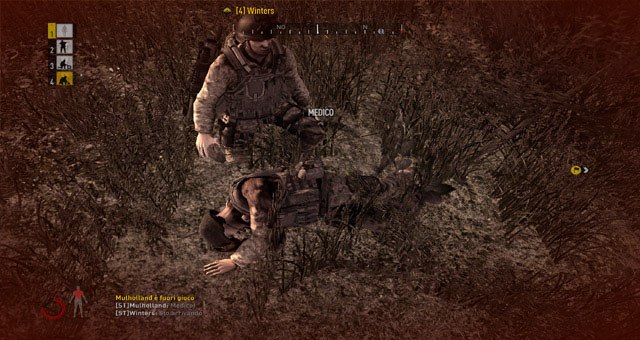 Altre cose riguardanti il gameplay davvero importanti sono la possibilità di frugare i corpi nemici di modo da trovare armi e munizioni ma anche bendaggi per le ferite superficiali. A questo proposito, sappiate che il corpo è suddiviso in zone che se colpite varieranno gli effetti del nostro comportamento sul campo. In parole povere ma come è facilmente intuibile, se un colpo ci prende le gambe, difficilmente saremo capaci di correre, se raggiunge un braccio, tremeremo mentre si spara e via di questo passo. Fra l’altro, se non cureremo subito la ferita, la perdita di sangue inizierà a gravare pesantemente sul personaggio fino a farci raggiungere il regno dei morti. Attenzione però che anche curando la ferita non saremo portati di nuovo al massimo di salute e che quindi dovremo riguardarci spesso. Ottima interazione anche per quanto riguarda il dottore che tornerà utile negli attimi di convalescenza prolungati a seguito di un colpo troppo preciso ma non mortale.