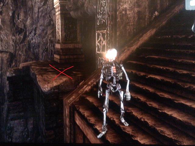 Testa di statua di bronzo: Dal tesoro precedente salite 3 scalinate e prima di salire anche la quarta, guardate di fronte ad essa per trovare l’ultimo tesoro.