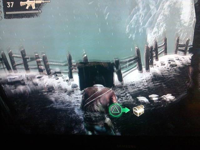 Catino tibetano di corno: Una volta aperto il passaggio sotto l’albero della vita, scendete e arrivate alle scale di fronte all’albero. Andate dov’è Elena sulla foto e saltate sulla piattaforma innevata dove è indicato il tesoro.