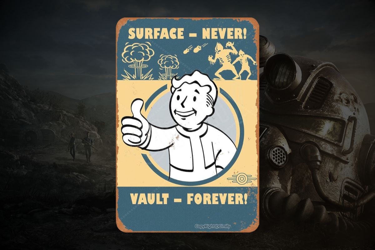 Se non vi piacciono le figure in vinile perché magari occupano troppo spazio sulle mensole, ma allo stesso tempo desiderate un gadget da collezione a tema Fallout allora la targhetta in latta è il prodotto che fa per voi. Si tratta di una targa di 20 cm di larghezza e 30 cm di lunghezza che può essere applicata su ogni superficie: sul muro della vostra camera, sulla parete del bagno oppure magari nel vostro studio a tema videoludico dove avete visto la serie tv di Fallout.