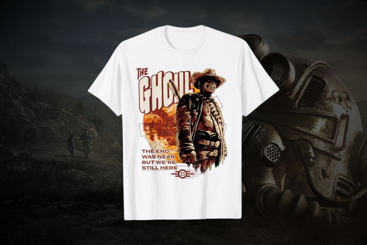 Concludiamo la nostra rassegna di capi d’abbigliamento con una t-shirt dedicata a uno dei personaggi principali della serie tv di Fallout, ovvero The Ghoul che nella serie televisiva di Prime Video è interpretato da Walton Goggins. I “Ghoul” sono personaggi ricorrenti della saga videoludica di Fallout e sono principalmente umani trasformati dopo l’esposizione alle radiazioni: nella serie tv si è scelto di creare un personaggio unico importante ai fini della trama.