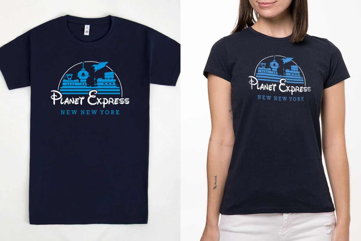 Dal mondo dei videogiochi passiamo a quello delle serie tv, o meglio, delle serie animate occidentali con una t-shirt nera dedicata a Futurama, tra i cartoni animati più apprezzati di questa generazione. La grafica rappresenta la navicella Planet Express e il laboratorio dei protagonisti nello stile stilizzato del celebre logo di Walt Disney con il castello sullo sfondo e l’arco luminoso.