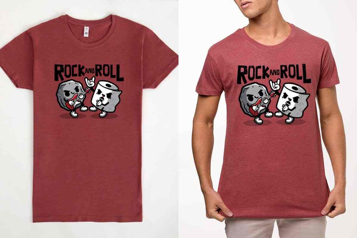 Abbandoniamo il mondo nerd per spostarci su una t-shirt molto particolare e sicuramente divertente: questa maglietta con sfondo rosso presenta una grafica chiamata “Rock and Roll” facendo un simpatico gioco di parole con una roccia (rock) che suona un basso e un rotolo di carta igienica (roll) che canta tenendo in mano un microfono.