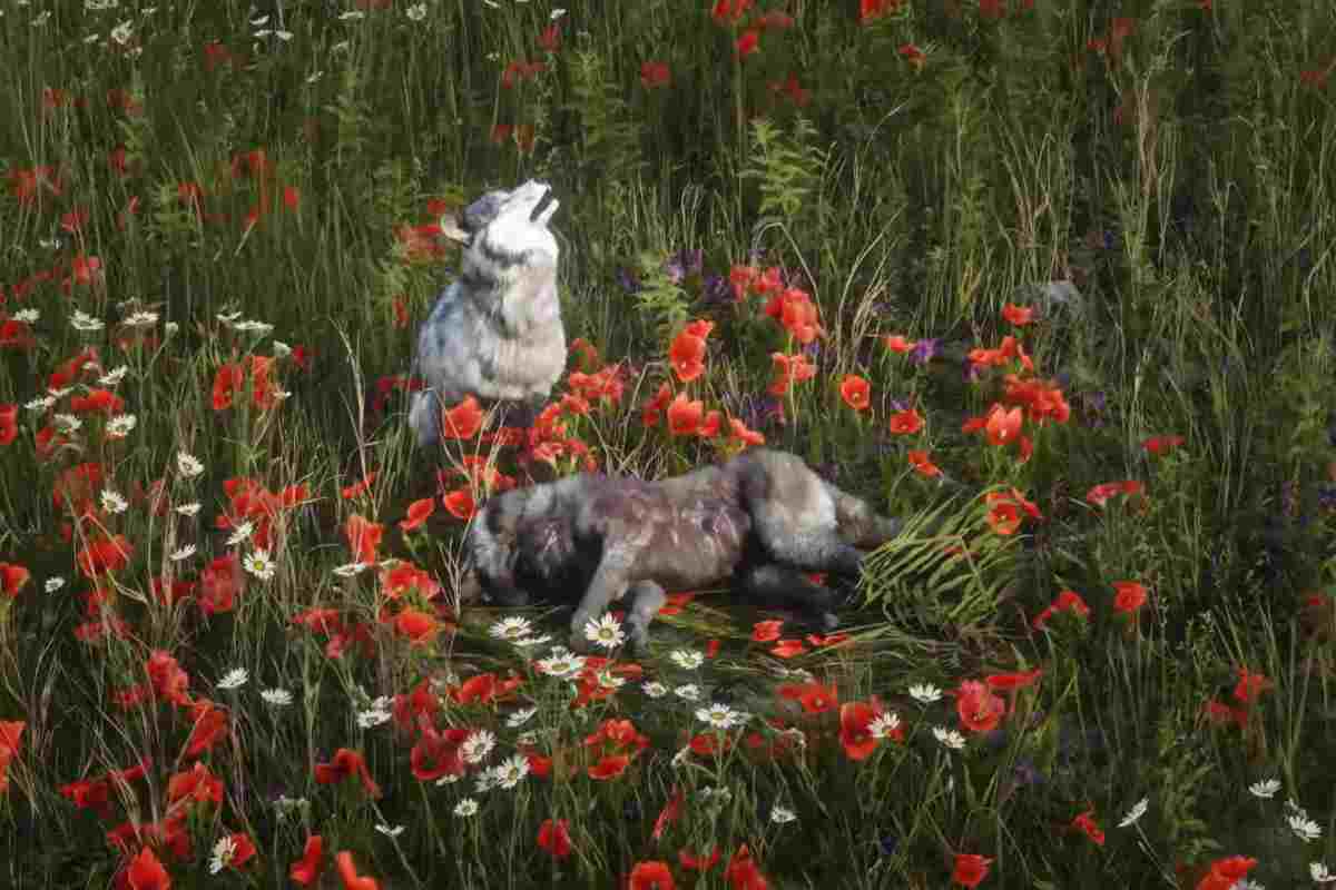 Ad un certo punto si vede un lupo, fermo, seduto, che ulula. Accanto a lui c’è un corpo senza vita di un altro lupo, probabilmente morto in seguito a uno scontro con un altro predatore oppure ucciso da qualche bracconiere, se non addirittura per gioco da chi passava lì vicino. Il primo lupo lo tiene vicino, mentre ulula con quella che potremmo definire dolore.