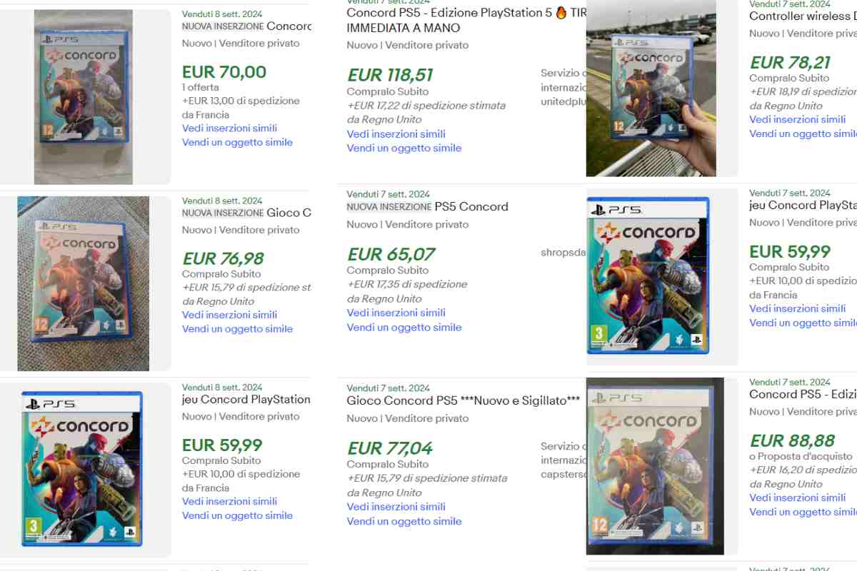 E nel giro di pochissimi giorni, il prezzo delle copie fisiche di Concord è schizzato alle stelle. Tra le copie vendute, è possibile trovare prezzi che vanno dai 60 euro fino a quasi 120 euro per una singola copia. Tantissime le copie vendute tra i 70 e gli 80 euro. Per mettere questi dati in prospettiva, vi ricordiamo che al lancio, la versione standard di Concord costava 39,99 euro mentre la versione Deluxe, che comprendeva vari bonus tra cu 16 skin e tre giorni di accesso anticipato, costava 59,99 euro.