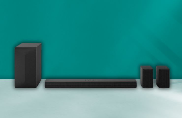 L’impianto audio in questione progettato interamente da LG presenta diverse componenti per garantire un comparto sonoro eccellente quando collegato al proprio televisore o a qualsiasi altro dispositivo dal quale vogliamo che fuoriesca l’audio: l’intero sistema è infatti formato da una soundbar principale, due casse wireless posteriori e una cassa subwoofer per una potenza totale di 440 Watt.
