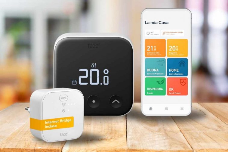 L’azienda tado°, società tedesca che si è specializzata nella creazione di sistemi di controllo smart per il risparmio energetico domestico, ha pensato bene di ideare questo termostato intelligente che permette non solo di controllare la temperatura interna delle stanze da remoto, ma anche di monitorare in maniera molto intelligente i consumi energetici che, in vista della stagione invernale, tornano a minacciare i nostri risparmi.