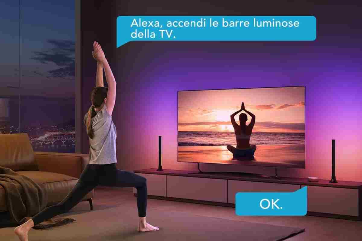 Come chicca, è possibile impostare fino a 8 Modalità Musica, sempre utilizzando l’app: in questo modo, potrete tranquillamente rendere il vostro salotto una vera e propria pista da ballo, abbinando il movimento delle barre e il comportamento della luce, alla musica scelta. Per l’installazione, nulla di più semplice dato che potrete montare le light bars dietro il televisore o lateralmente, anche in posizione orizzontale grazie ai comodi supporti in dotazione.