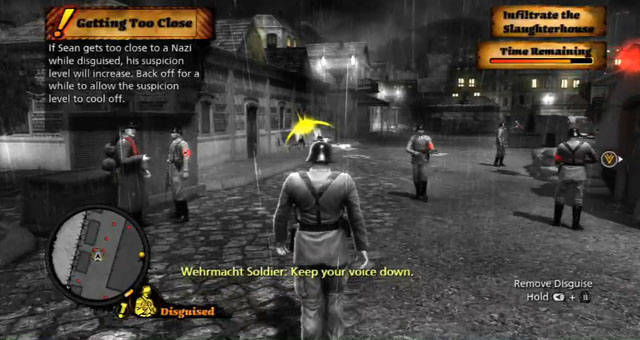 The Saboteur è un titolo che basa le sue caratteristiche principali sul free-roming, come accennavo a inizio articolo ma che per un motivo o per l’altro – forse spinti anche da alcune barriere che la storia impone a tutti i costi – l’azione del gioco prenderà presto il sopravvento cosi come le barriere invisibili che all’inizio del gioco non sembrano essere presenti: in parole povere, dopo la prima metà del gioco, la storia dovrà essere seguita da un’unica e sola strada percorribile. Detto questo, sappiate che in alcuni schemi, soprattutto nelle missioni di infiltrazione, il gameplay subirà un cambio di rotta molto netto che andrà a toccare anche il genere stealth e quindi dovremo destreggiarci con assassini silenziosi, travestimenti e basso profilo onde evitare di essere scoperti e successivamente finire sotto tre metri di terra parigina. Purtroppo, la vera noia del titolo è rappresentata proprio dalle missioni principali che, come sempre, non brillano certo per originalità e chi ha già avuto modo di giocare a titoli come GTA, Assassin’s Creed, Far Cry 2 o lo stesso Mercenaries, sentirà un fastidiosissimo fischio rimbombargli nelle orecchie. Azioni come ruba le scorte di munizioni, fai saltare quel determinato palazzo, uccidi quel soldato, infiltrati in quella base nemica, proteggi quella persone e via di questo passo, non segnano nulla di davvero nuovo all’orizzonte del free-roming ne tanto meno ad una storia, quella di Sean che non porterà alla luce nulla di davvero esaltante ma tutto abbastanza scontato e ripetitivo.