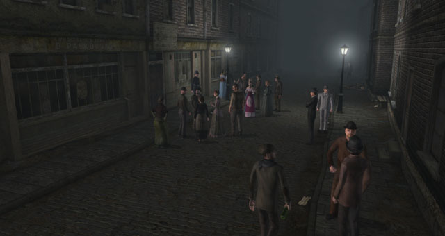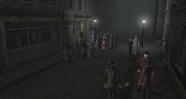 Holmes vs Jack (per abbreviare) è una avventura grafica realizzata completamente in 3D, quindi dimenticatevi sfondi realizzati a mano e pre-digitalizzati, qui potremo camminare in lungo e in largo in una Londra oscura e grottesca che ben si sposa con le indagini a cui il gioco fa riferimento. Buona la modellazione di personaggi ed edifici cosi come ottime risultano le texture generali anche se qualche volta capita che si impastino con lo sfondo. Sicuramente un gioco ben curato sotto l’aspetto visivo ma che non spremerà al massimo il processore della vostra console: l’ambientazione generale risulta comunque abbastanza accattivante. Se proprio volessi cercare il pelo nell’uovo, potrei portare alla luce una animazione dei personaggi, soprattutto per quanto riguarda la corsa, davvero troppo legnosa ma tengo presente che siamo dalle parti dell’avventura grafica e non del genere action dove i movimenti del personaggio devono essere fluidi e dinamici per impreziosire. Stessa cosa dicasi per alcune ambientazioni forse troppo povere di dettagli o di personaggi non giocanti ma anche qui, il brivido della desolazione può essere dato per scontato dalla forte ambientazione oscura o putrida della Londra del 1888 dove di certo le strade non erano pulite ogni giorno da baldi netturbini e alcuni luoghi inaccessibili, non potevano essere visitati dalla brava gente.
