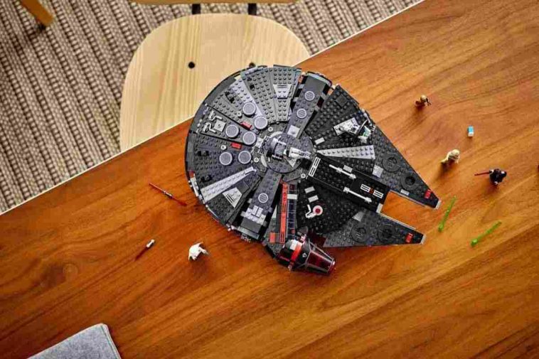 Il set in questione da 1579 pezzi è dedicato proprio al “Dark Falcon”, ovvero una versione oscura del celebre Millennium Falcon pilotata da Darth Jar Jar, presente all’interno della confezione come modellino insieme ad altre figure dedicate a C3-PO cacciatore di taglie, Darth Dev, Darth Rey, Luke da spiaggia e Jedi Vader.