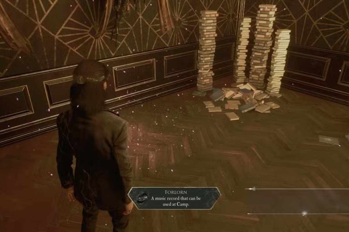 Da lì, grate a destra e prendete la corda magica che vi porta giù. Prendete anche la seconda corda che vi troverete davanti. Quando troverete un Nevron e una figura femminile che pende dal soffitto. A sinistra di questa figura, troverete l’ennesima porta che vi conduce all’interno della Villa. Entrate e, sulla scrivania della stanza in cui vi trovate, ci sarà il vinile.