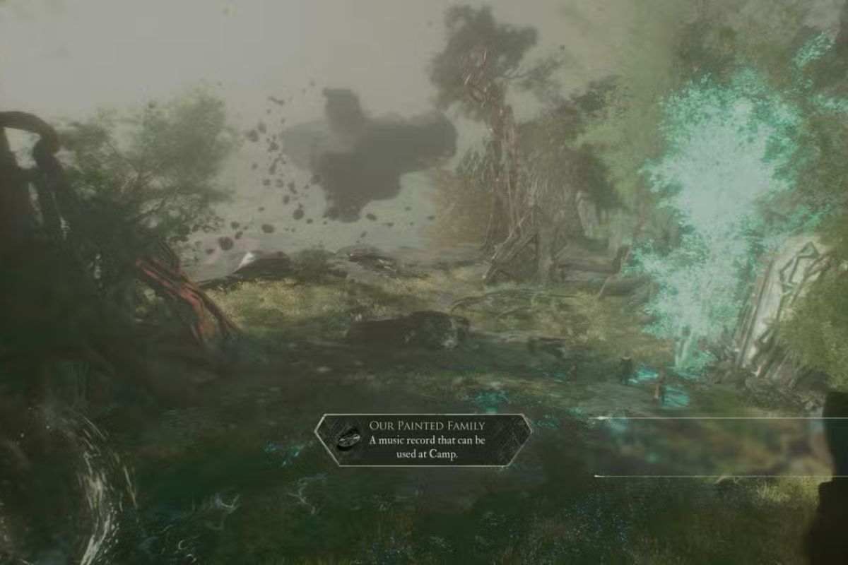 Attraversate il campo di battaglia e, quando raggiungerete la foresta che sembra riprodurre la tomba di Gustave, mettetevi in cammino per il sentiero alla sinistra di questa. Sorpresa sorpresa, troverete un’altra porta della Villa. All’interno, il vinile.
