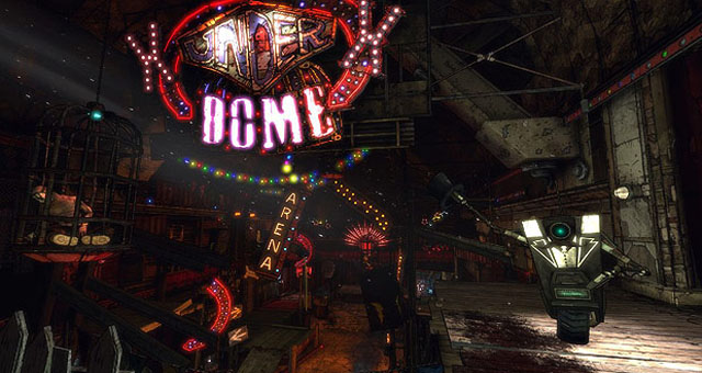 Come nel precedente DLC, anche in questo caso, la trama principale punta tantissimo sullo scanzonato e sul divertente sempre rimanendo ancorato alla violenza ludica da humor nero. Andremo cosi a conoscere il personaggio femminile di Mad Moxxi che altro non è che una vedova (di tre mariti…chissà che fine hanno fatto…) che ha creato delle arene per divertirsi e per divertire la sua gente con scontri brutali all’ultimo sangue. La base degli scontri è dunque un Underdome principale dove sarà possibile commerciare prima di iniziare ogni scontro, comprando armi o armature di diversa fattura e resistenza o potenza a seconda delle armi scelte.